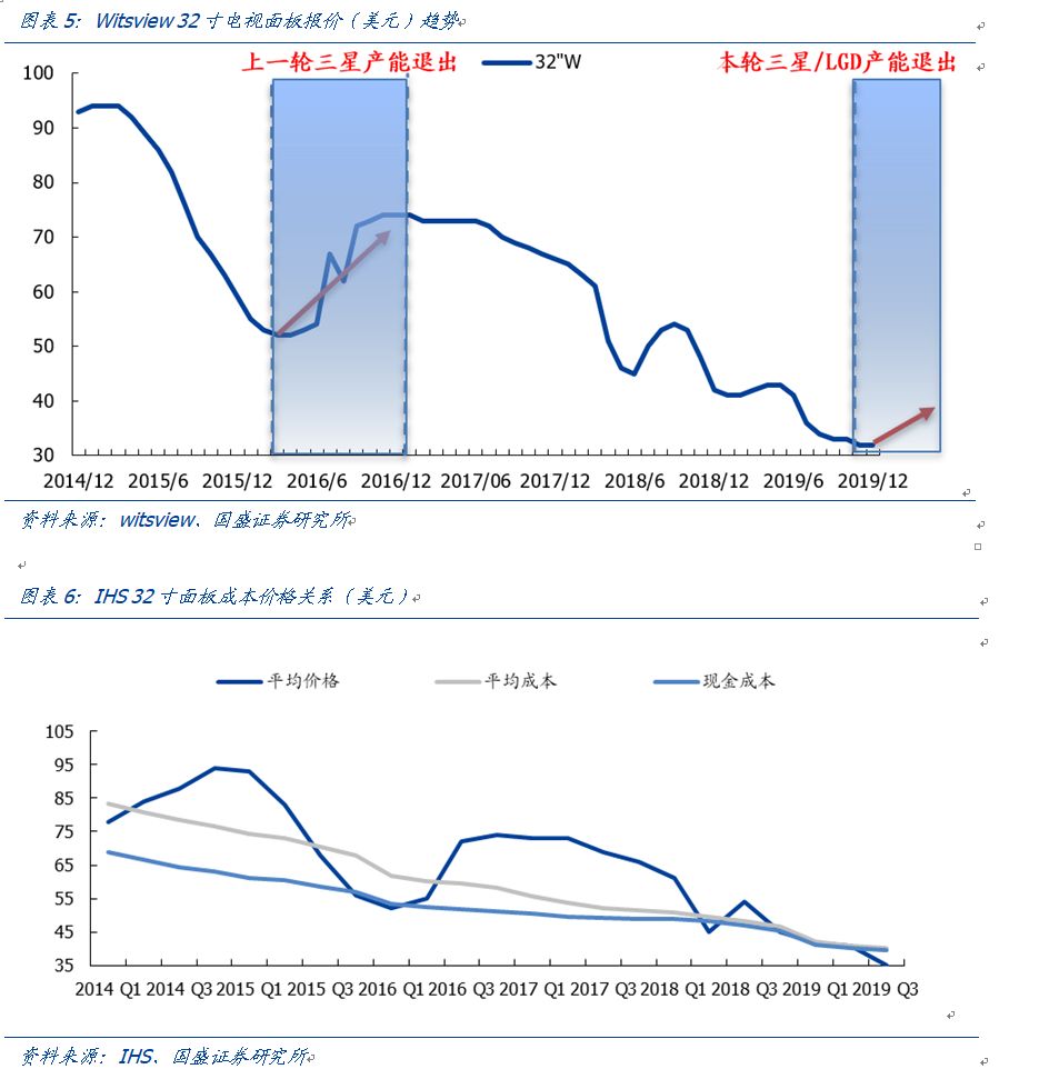 基于产业趋势,判断面板行业已经进入反转,短期向上,长期回归健康。 tv 面板价格破新低,32/55/65 寸均在现金成本以下,2019q4 以来跌幅边际收窄。目前行业库存回归健康水位,明年奥运会、欧洲杯拉货需求提升,底部价格反转可期。